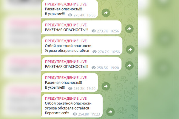 Об угрозе ракетного обстрела жителей города предупреждают не только уличные системы аудиооповещения (сирены), но и местные Telegram-каналы. Самым надежным и оперативным считается канал «Предупреждение LIVE», у него более 300 тыс. подписчиков.
