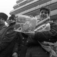Презентация музыкальных альбомов в магазине «Мелодия» на Калининском проспекте (ныне Новый Арбат), выпущенных совместно с международной организацией Greenpeace («Гринпис» (организация признана в РФ нежелательной)) и советской фирмой звукозаписи «Мелодия».
