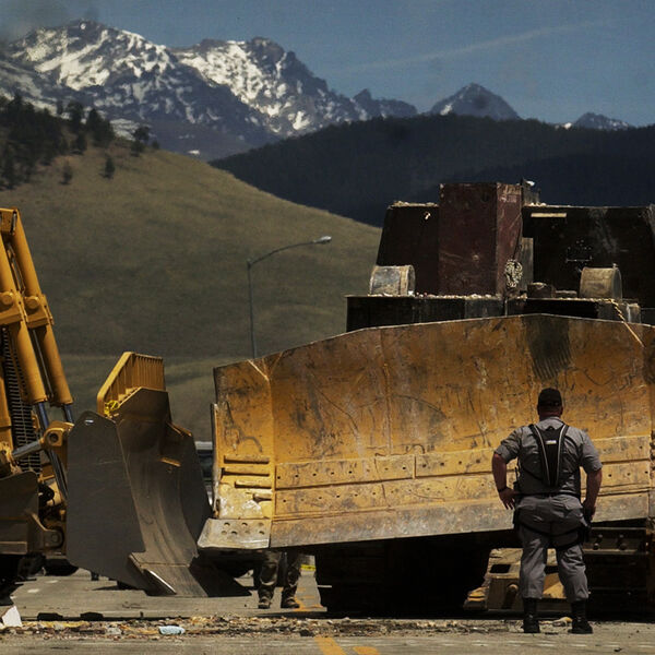 Копы продолжали стрелять по бульдозеру, целясь в объективы видеокамер. Местный пожарник подскочил к машине и попытался закачать в воздухозаборник пропан из баллона в надежде, что двигатель взорвется. Не сработало.