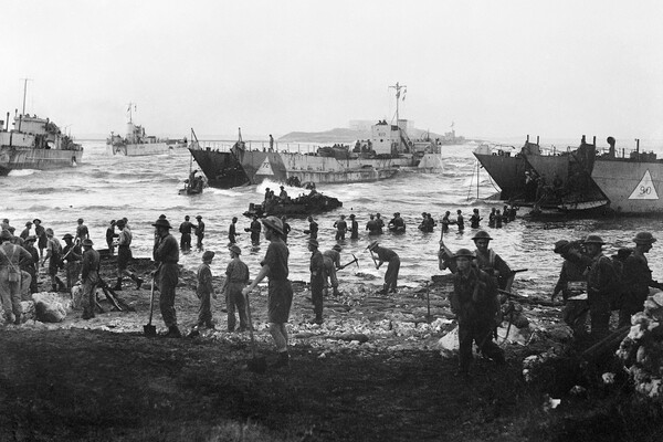 В первой волне морского десанта в «День Д» на французский берег смогли доставить 156 тыс. солдат и 10 тыс. танков и другой бронетехники. Высаживались на нормандских пляжах с кодовыми названиями «Голд», «Джуно», «Суорд», «Юта» и «Омаха».