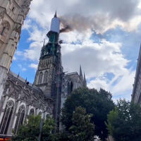 Телеканал показал кадры, на которых от Руанского собора в небо поднимаются густые клубы дыма. Как сообщил мэр города Николя Майер-Россиньоль, возгорание произошло на шпиле здания. В местной префектуре уточнили, что власти эвакуировали находящихся в соборе, на месте установлен периметр безопасности. Местных жителей попросили покинуть район и воздержаться от поездок туда.