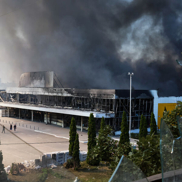 Аварийные службы не могли оперативно подойти в горящему ТЦ и помочь людям, которые могут быть заблокированы внутри — около здания зафиксирована активность украинских беспилотников.