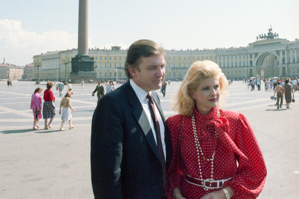 Дональд Трамп и его супруга Ивана на Дворцовой площади, 1987 год