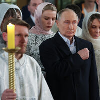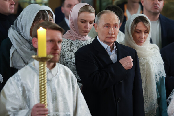 В ночь на 7 января президент России Владимир Путин встретил праздник Рождества Христова в храме Георгия Победоносца на Поклонной горе в Москве. Он прибыл туда ближе к полуночи, в пальто и костюме, но без галстука. На службе глава государства поставил свечи, перекрестился и стоял среди верующих, которые молились за мир и благополучие.