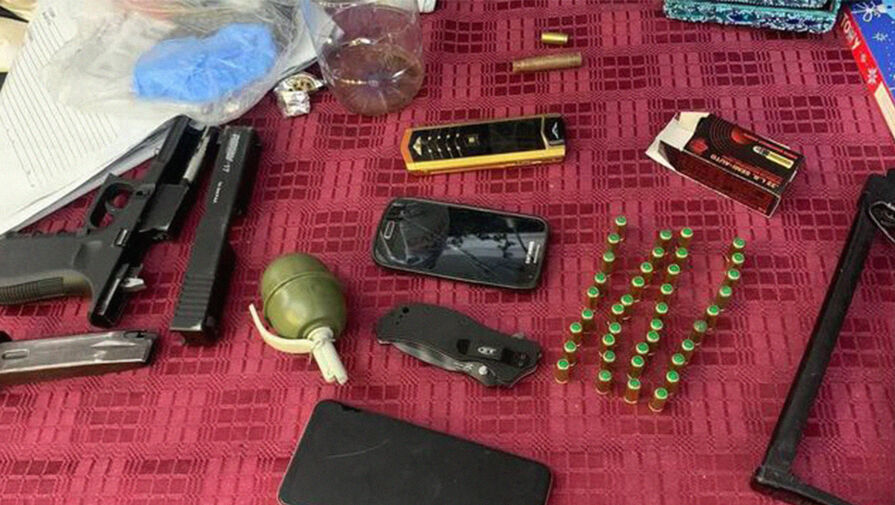 Журналисты опубликовали фото с места обысков. На снимках — травматический пистолет, патроны и магазин к нему, кастет, страйкбольная граната, три ножа и приклад. У молодых людей изъяли также мобильные телефоны и компьютерную технику.