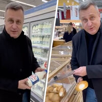 «Тут, наверное, шесть метров полок! Смотрите, тут, не знаю, 50 видов масла. Средняя цена €1.30 – €2.80. Я бы, наверное, вот это купил сразу… А здесь, наверное, наибольший выбор творожков, который видел в своей жизни», — поделился впечатлениями Данко.