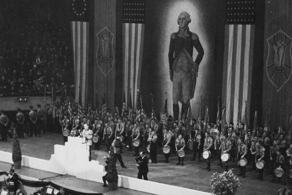 В феврале 1939 года в Нью-Йорке на арене Медисон сквер-гарден состоялся самый масштабный в истории слет американских нацистов. Мероприятие сторонников Гитлера в США в поддержку «американизма» запомнилось огромным портретом Джорджа Вашингтона, который «был бы другом Гитлера», свастиками и множеством салютов Беллами (жест, который недавно продемострировал Илон Маск, его легко спутать с «зигой»), а также драками с евреями и троцкистами. О корнях и судьбах американских наци — в материале «Газеты.Ru».