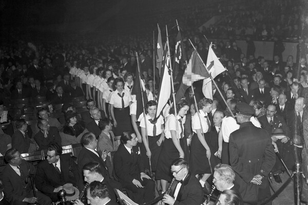 Итак, 20 февраля 1939 года на Медисон сквер-гарден проходил седьмой по счету съезд американских нацистов. Звучали немецкие и американские военные и народные песни. Члены бунда маршировали в форме, неся американские и нацистские знамена.