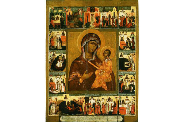 Нерукотворный первообраз почитаемой иконы появился в израильском городе Лидда, современное название Лод, где апостолами Петром и Иоанном был сооружен храм в честь Пресвятой Богородицы. Согласно преданиям, Божия Матерь посетила Лиддский храм и наделила свой образ благодатью и чудотворной силой. В период иконоборчества святыне не раз грозило уничтожение. На Руси в XVI веке эта икона стала отождествляться с Тихвинской иконой Божией Матери.