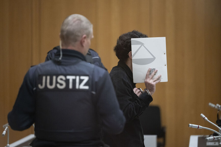 Обвиняемый Сулейман А. (справа) во время судебного заседания по делу о нападении с ножом на рыночной площади в Мангейме, 1 апреля 2025 года