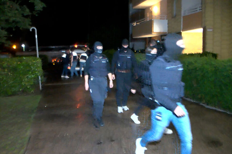 Полицейские во время обыска квартиры обвиняемого по делу о нападении с ножом на рыночной площади в Мангейме, 31 мая 2024 года