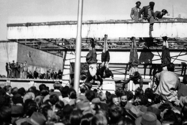 Вскоре партизаны расстреляли еще 15 пленных фашистов. Тела казненных отвезли в Милан и бросили кучей на площади. Собралась толпа — трупы закидывали гнилыми овощами, плевали и мочились на них, стреляли и пинали. Лицо Муссолини превратилось в месиво. Свидетелями надругательства над телом диктатора были американские солдаты, описавшие толпу разъяренных горожан как «зловещую и развращенную».