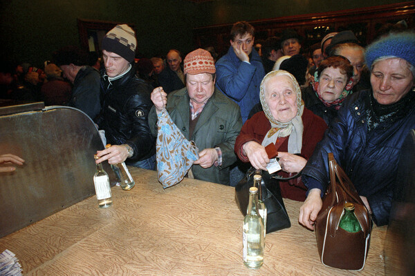 «Стоят в очереди по три-четыре часа и потихоньку звереют. Бьют стекла в магазине, рвут двери, друг друга тоже рвут. За три дня до моего приезда в поселок убили в очереди человека. А одну старушку, которая, отстояв в очереди, купила водки на поминки по сыну, догнали, ударили по голове, сбили с ног и расхватали бутылки. И это посреди дня. Вот и сегодня, хотя и повысили цены на алкогольные напитки, а возле магазина — мамаево побоище».