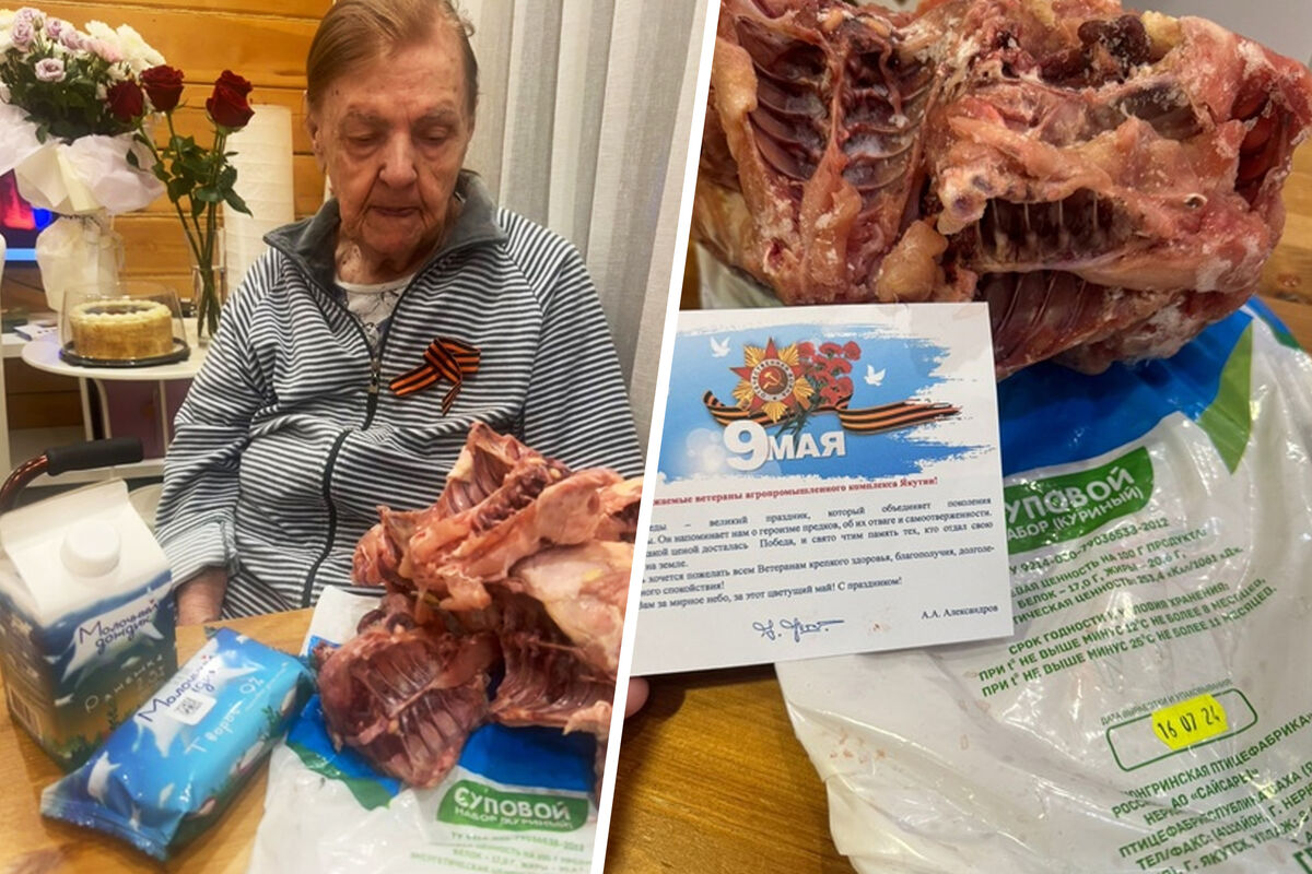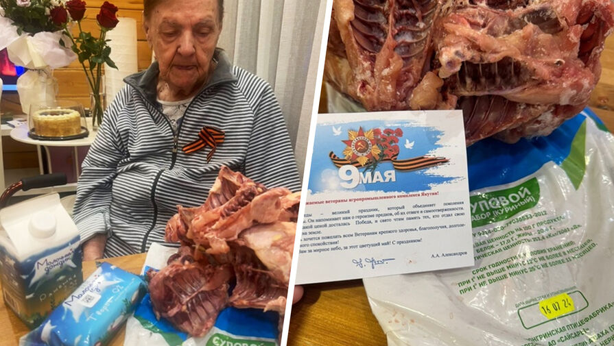 В Якутии ветерану тыла, вдове ветерана Великой Отечественной войны Таисии Хромовой подарили на 9 Мая суповой набор из костей, изготовленный в июле 2024 года, и творожок с ряженкой. Об этом рассказал якутский предприниматель и член «Общероссийского народного фронта» Антон Жондоров, к которому обратились внуки пенсионерки. К подарку также прилагалась открытка за подписью министра сельского хозяйства республики Артема Александрова.