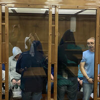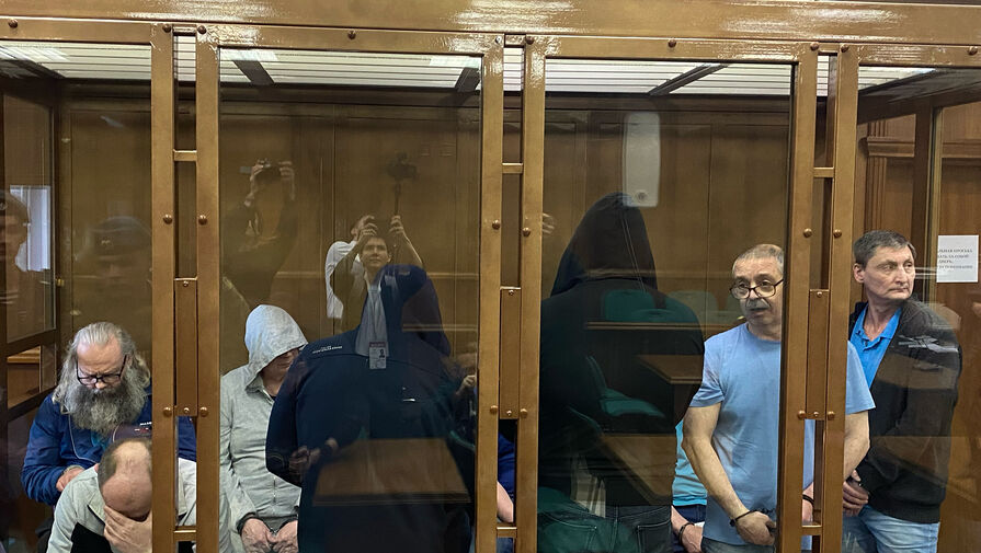 «Ого, как их много! Снимать, видимо, больше нечего. Ну, а что, мы хорошо сохранились», — посмеиваются и храбрятся пожилые мужчины, сидящие в судебном «аквариуме». Всего их десять. Если на прошлом заседании никто не скрывал лиц, то теперь часть демонстративно стоит спиной к прессе и прячется в объемных капюшонах.