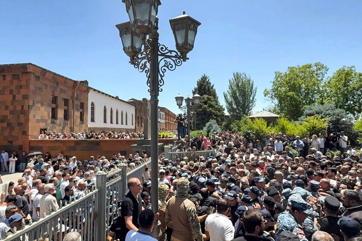 27 июня в городе Вагаршапат, на территории первопрестольного святого Эчмиадзина — духовного центра Армянской апостольской церкви (ААЦ), произошла потасовка между силовиками и священниками. К резиденции католикоса всех армян Гарегина II были отправлены четыре спецподразделения. Сотрудники Службы национальной безопасности страны пытались задержать архиепископа Ширакской епархии Микаэла Аджапахяна, но священники и прихожане не позволили им это сделать, передает «Sputnik Армения».