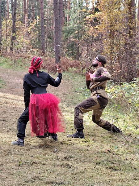 «Я вообще из полиции, но сегодня я [Бобер] (название племени изменено по просьбе участника). На Лесе уже не первый раз, очень люблю этот проект. Тут отдыхаешь от всего, от работы», — делится девушка-колдун, на моих глазах с помощью магии пачками снимающая погоны с чужаков.