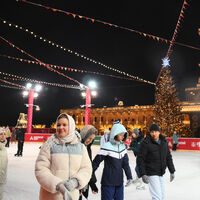Каток и новогодняя ель у Северного речного вокзала в Москве, декабрь 2024 года