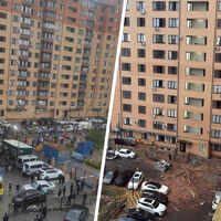 В результате в квартирах многоэтажки выбило более 30 окон. Кроме того, фрагменты кирпичей упали на дорогу, повреждены минимум 15 припаркованных автомобилей.