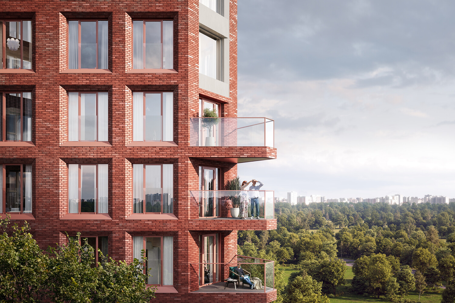 Панорамные окна, вариации этажности, разные формы балконов и террас — все это формирует эмоциональное восприятие дома и делает его частью городской среды.