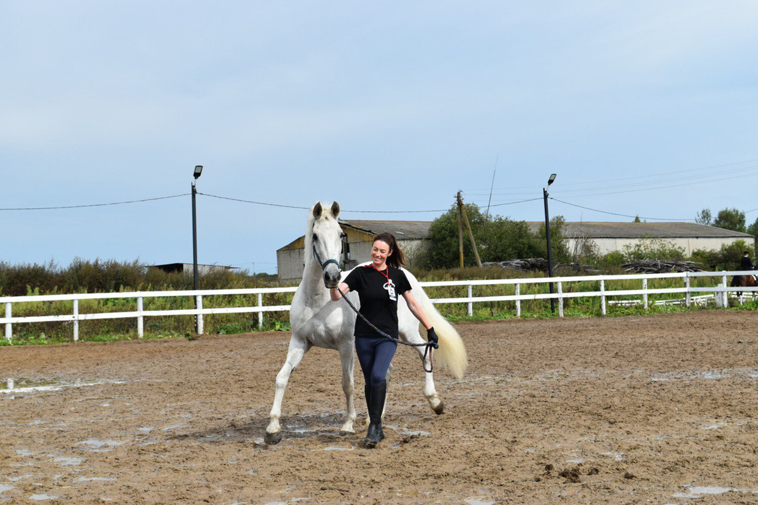 В начале нашего пути мы с Соней обе были «зеленые»: у меня было очень мало опыта в уходе за лошадью, а Соня еще не была обучена командам и особенностям взаимодействия с человеком. Мы познавали радости партнерства вместе. Характер у Сони непростой, и мы на конюшне с ребятами иногда шутим, что еще не известно, кто больше в схватке пострадал — она или медведь! Помимо радостных моментов, случались и трудности: не раз она от меня убегала или таскала по плацу, как «флажок». Но я не сдавалась. Много работала с Соней в руках, проходила курс по психологии лошади. Помогали работники приюта и другие волонтеры. Со временем мы достигли с Соней высокого уровня доверия и привязанности.