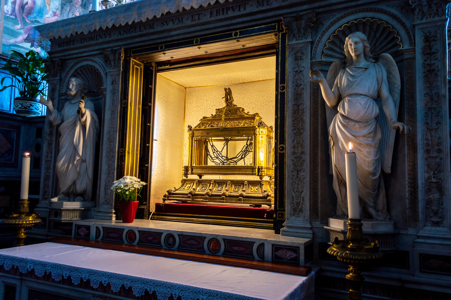 Около 42 года от Рождества Христова царь Ирод приказал схватить апостола Петра и заключить его в темницу. Святого сковали тяжелыми цепями — веригами. Казалось бы, спасения из темницы нет, однако ночью Ангел Господень снял цепи с Петра и вывел его на свободу. Христиане вынесли вериги из темницы и сберегли их как святыню. Впоследствии многие страждущие получили исцеление, молясь подле них. Сейчас святыня хранится в Риме в храме Сан-Пьетро-ин-Винколи и доступна для поклонения.