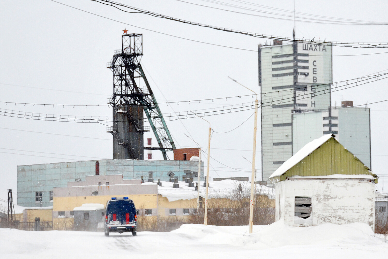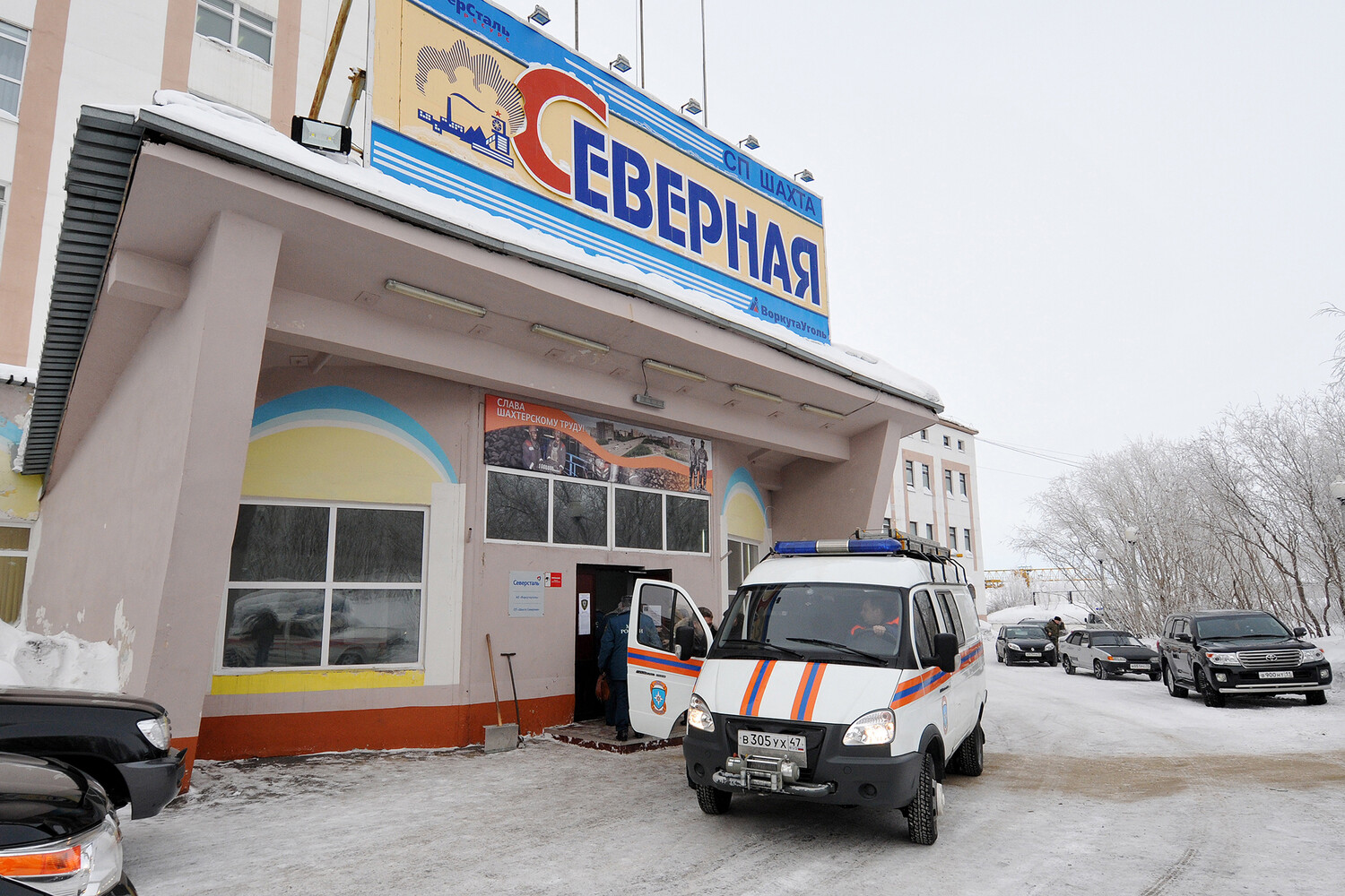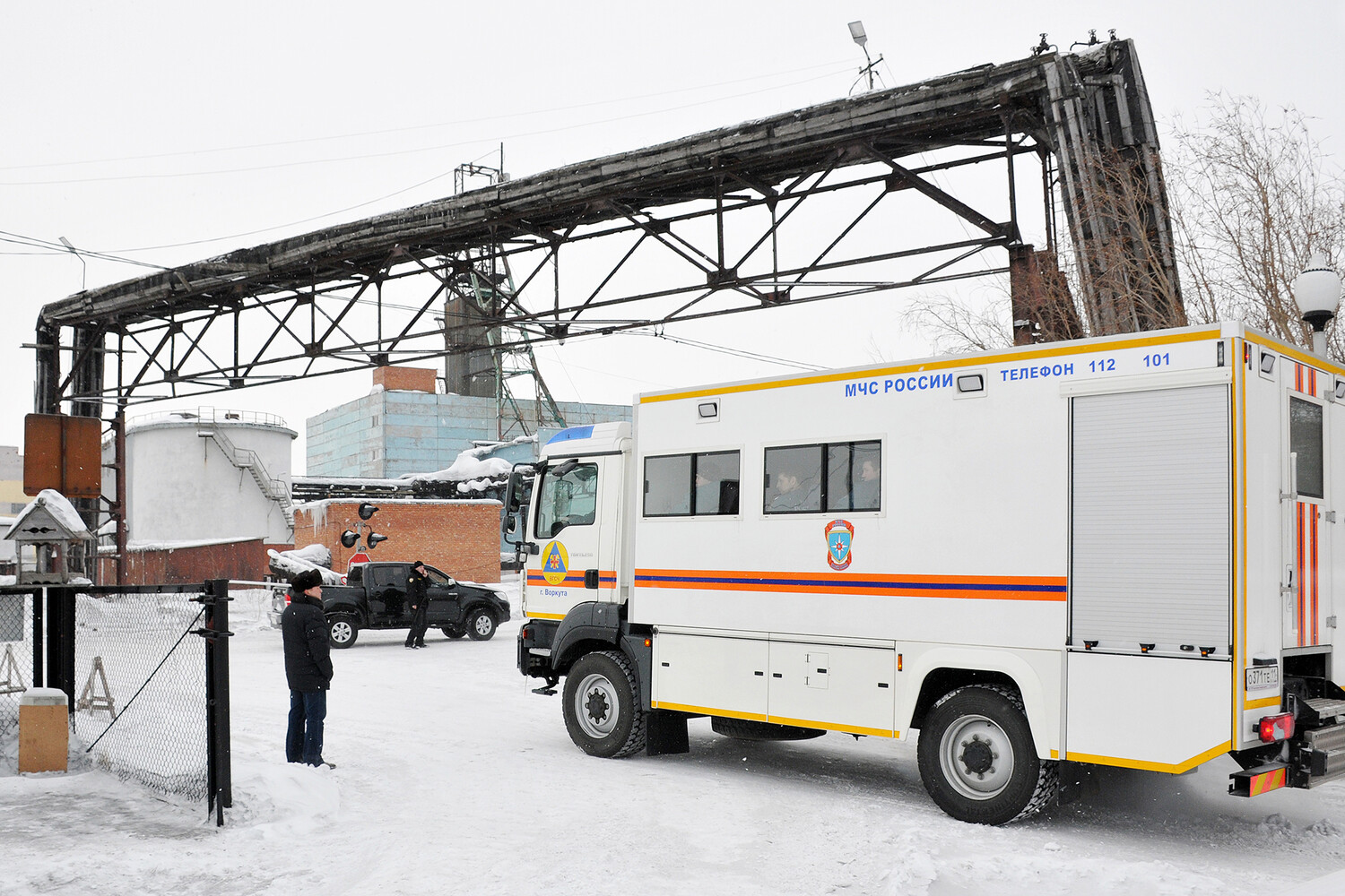Автомобиль спасательной службы МЧС России на территории шахты «Северная» в Воркуте, 26 февраля 2016 года