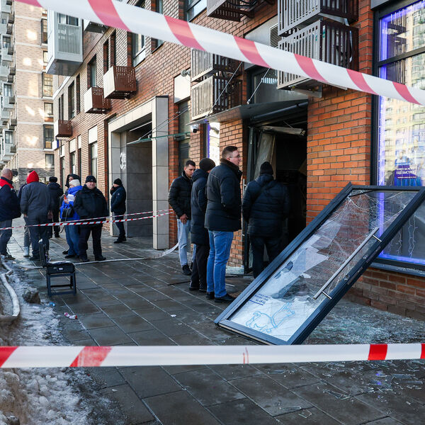 Инцидент произошел на улице Вольной. На кадрах с места происшествия видно, что взрывная волна выбила входную дверь банковского отделения и остекление, внутри частично обрушился потолок.