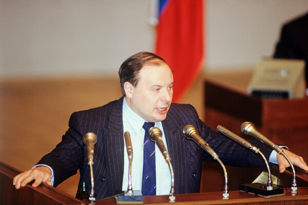 Министр экономики и финансов РСФСР Егор Гайдар во время выступления в Верховном Совете РФ в 1992 году