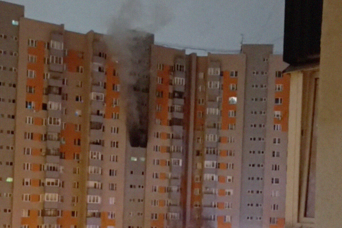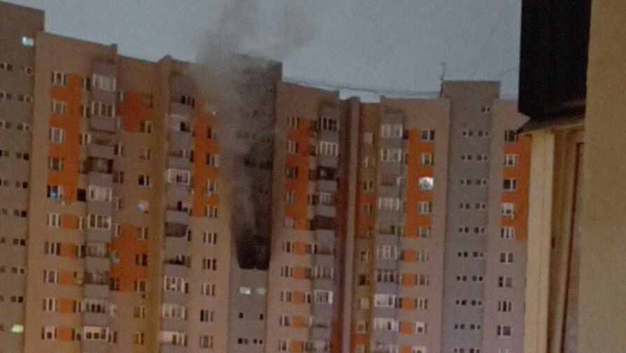Telegram-канал Shot сообщил, что перед пожаром жильцы дома услышали громкий взрыв. После этого с балкона повалил густой черный дым.