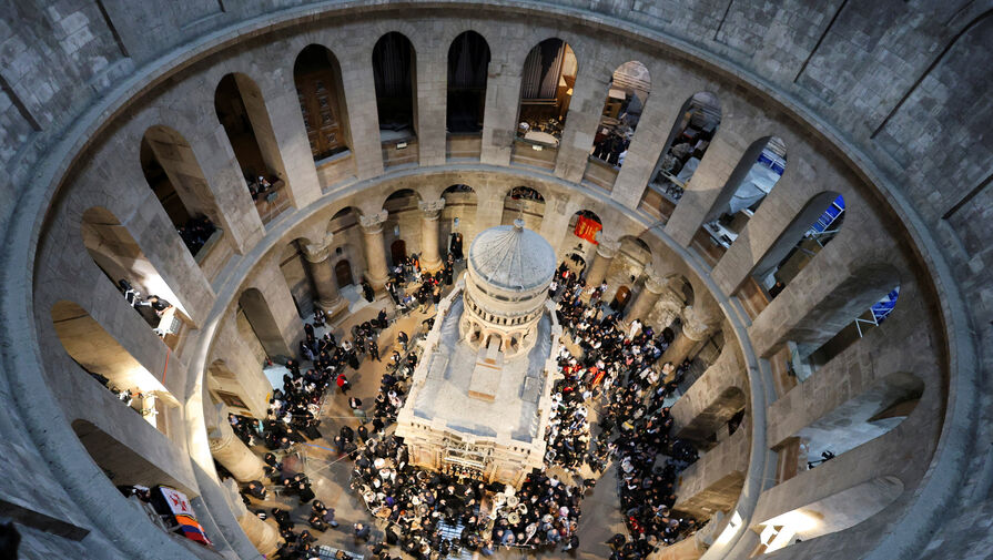 Тысячи паломников собрались в храме Гроба Господня в Иерусалиме в ожидании схождения Благодатного огня, передают СМИ с места событий.