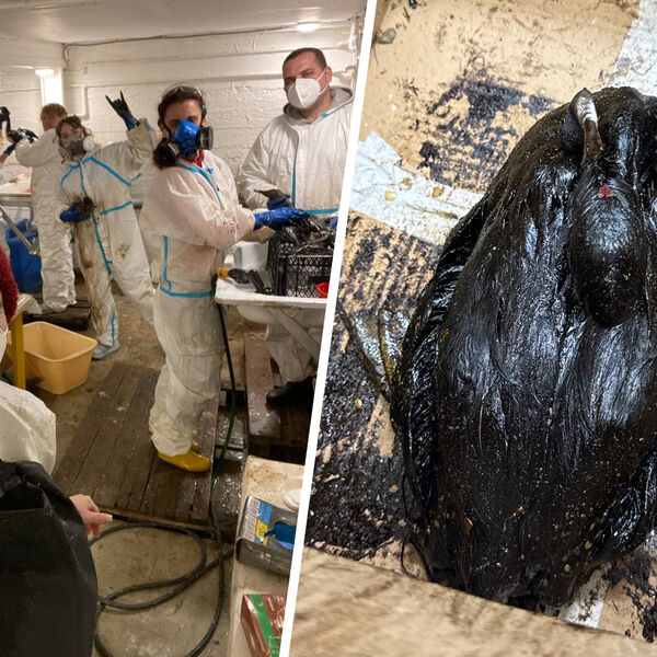«В результате повреждения гражданских кораблей в море могла вылиться незначительная часть нефтепродуктов. Как раз — легкой фракции, они образовали радужную пленку, в ней во время шторма и вымазались птицы», — уточнили в Telegram-канале оперштаба.