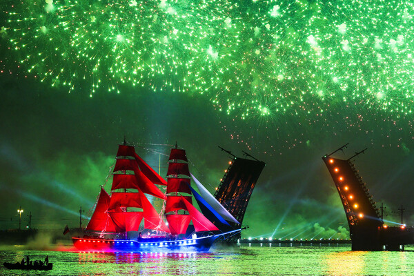 Эффектное празднество традиционно проходит во время белых ночей и в период школьных выпускных. Фестиваль состоит из двух частей: концерта на Дворцовой площади и пиротехнического шоу на Неве, с прохождением брига с алыми парусами. Праздник на Неве уже стал визитной карточкой города, поэтому в июне турпоток в Санкт-Петербург возрастает примерно в два раза по сравнению с другими месяцами. Полюбоваться красочным мероприятием приезжают и гости из российских регионов, и иностранные туристы. Однако билеты на «Алые паруса» официально не продаются, их бесплатно получают только выпускники школ.