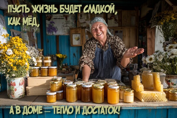 - С Медовым Спасом! Желаю, чтобы работа приносила вам золотые россыпи, как труд пчел, а вдохновение липло к рукам, как свежий мед!