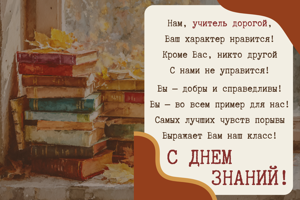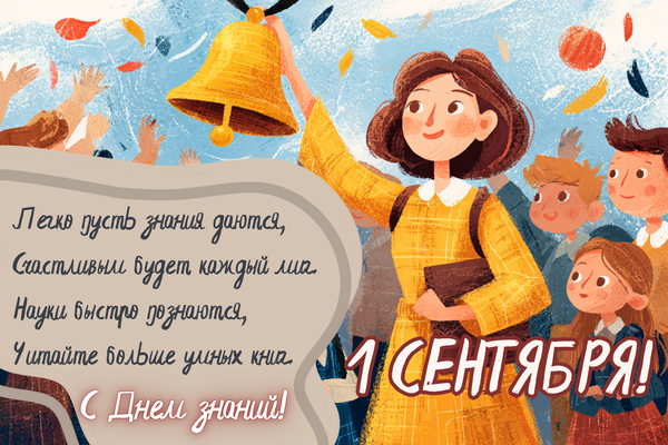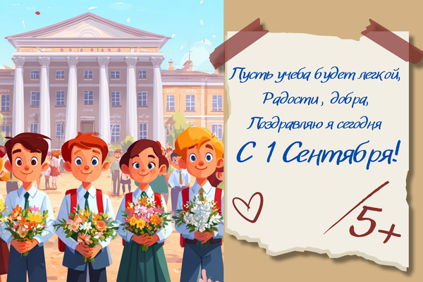 - С 1 сентября! Этот учебный год — как ключ к твоему будущему. Цени каждый момент, готовься усердно, верь в себя — и тогда все двери откроются. У тебя все получится!