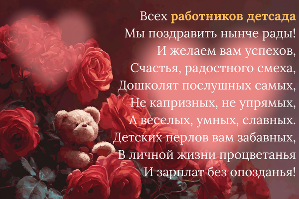 Поздравления для всего коллектива детского сада (заведующей, нянечке, логопеду)