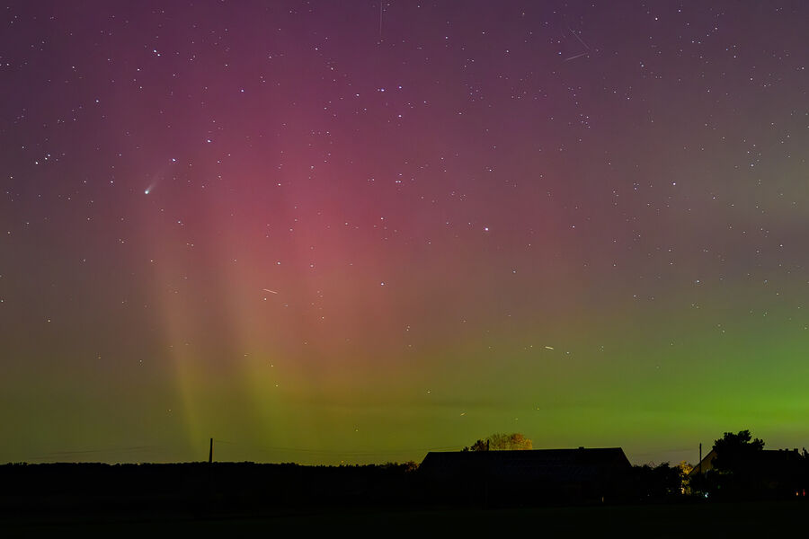 И еще один приятный сюрприз: в ту же ночь на максимум выходит метеорный поток Ориониды. Так что можно устроить себе ночное свидание с небом — комета и «падающие звезды» в одном кадре.