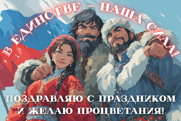 - С Днем народного единства! Пусть этот день напомнит нам о силе, которая рождается из взаимопонимания и поддержки. С праздником!