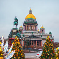 А чтобы окунуться в новогоднюю атмосферу, стоит пройтись по Рождественской ярмарке, выдержанной в русском стиле. После Дворцовой площади сверните направо от Зимнего дворца и прогуляйтесь по набережной Зимней Канавки, где живописные арки с огнями украшают 1-й Зимний мост.