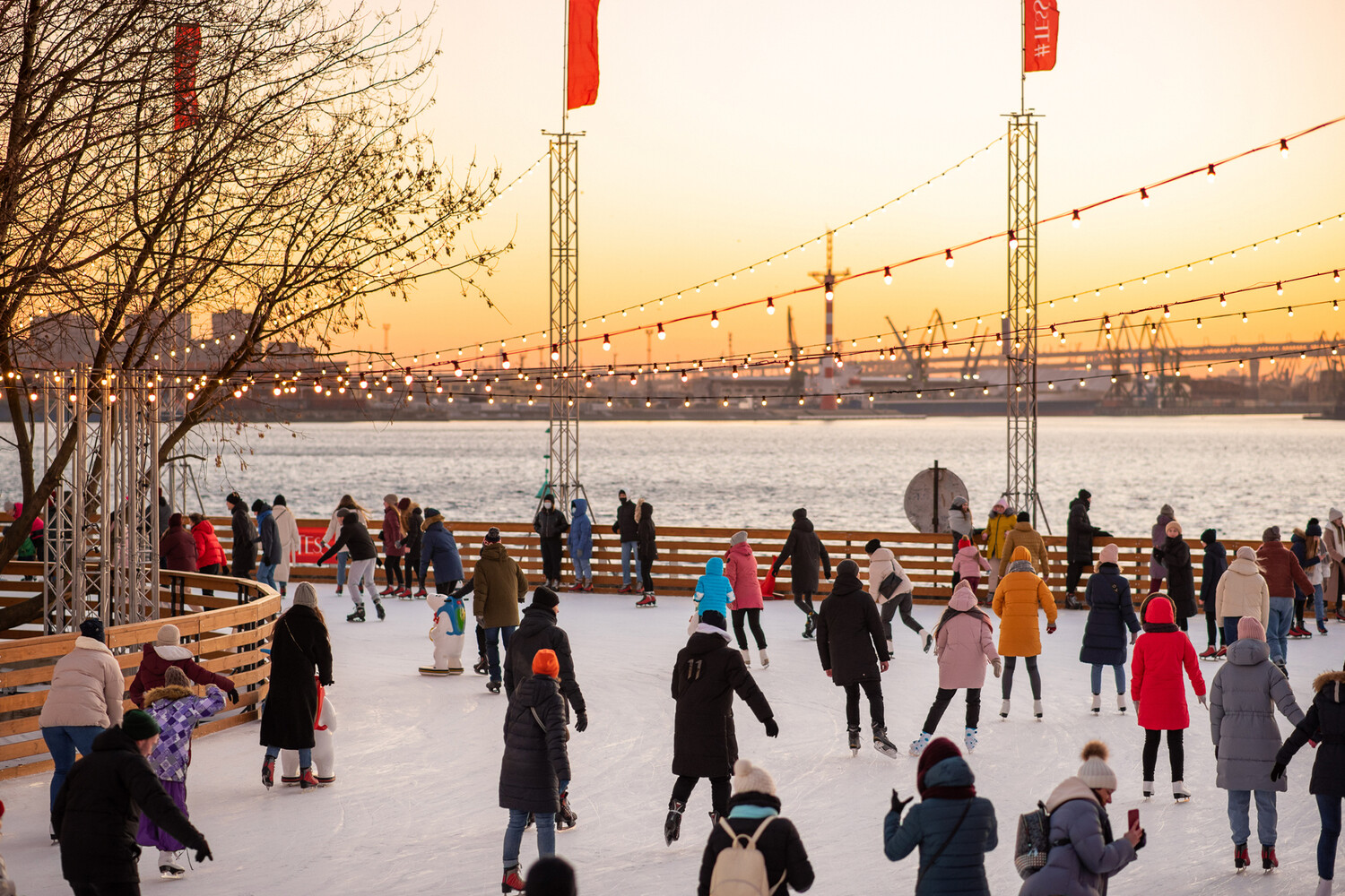 На площадке открылся «Каток у моря», площадью 2,2 тысячи квадратных метров, с видом на Финский залив и Вантовый мост. Здесь любой желающий может покататься на коньках, стоимость билетов — от 300 руб. На катке оборудована теплая терраса для отдыха с горячими напитками и булками, а также зона фудкорта.