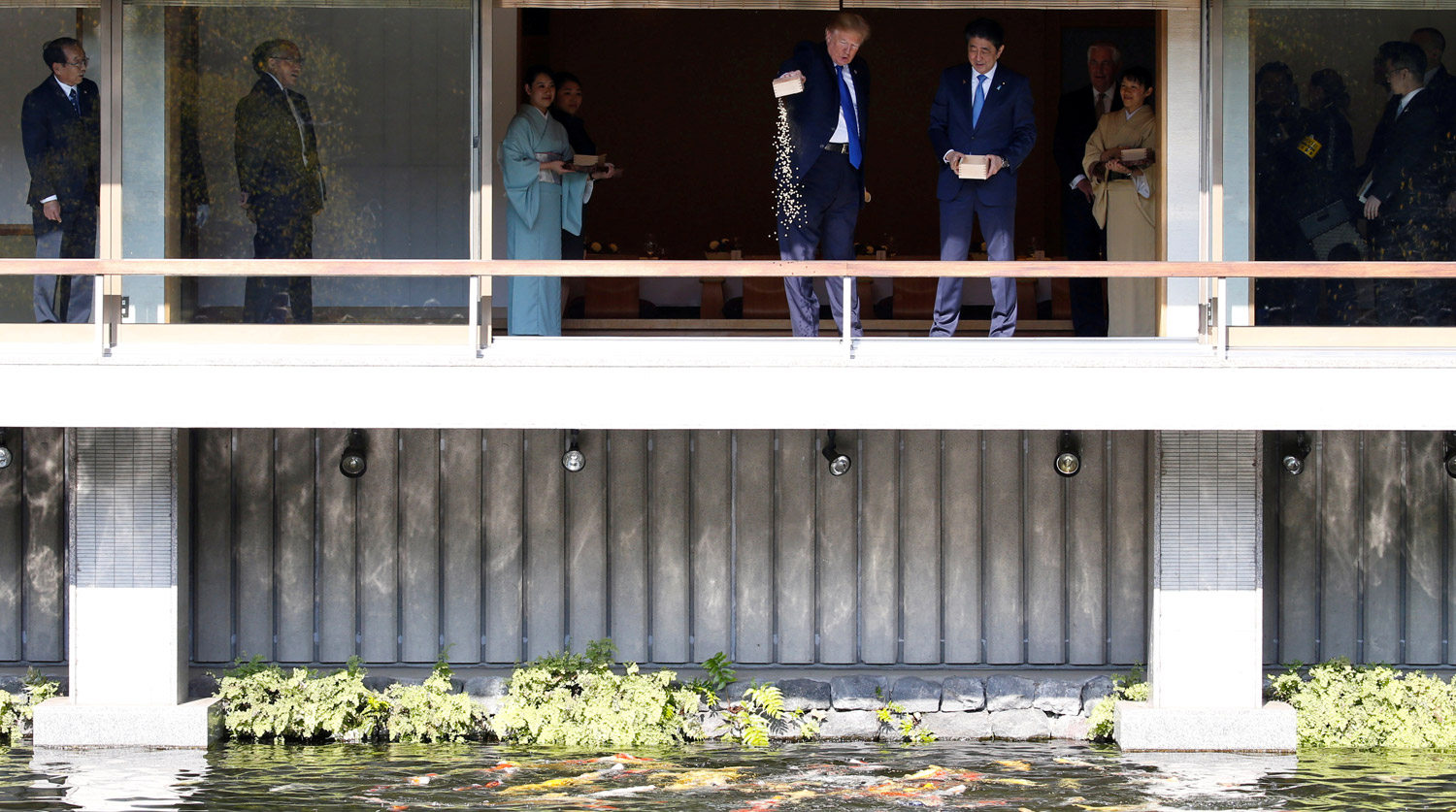 Президент США Дональд Трамп рассмешил премьер-министра Японии Синдзо Абэ кормлением рыб, сообщает CNN .