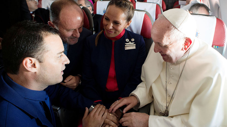Папа Римский Франциск во время перелета по Чили между городами Сантьяго и Икике обвенчал на борту самолета стюардессу Паулу Подест и бортпроводника Карлоса Чуффарди, сообщает La Repubblica.