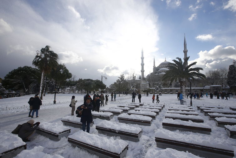 В турецкой провинции Карс в середине туристического сезона выпал снег, сообщает Merkez TV.