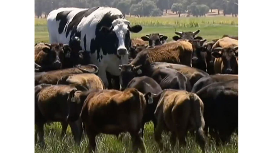 Австралийский черно-белый бык голштино-фризской породы по кличке Никерс, чей рост составляет 194 сантиметра, а вес достигает 1,4 тонн, избежал смерти на скотобойне благодаря своим размерам, передает Sky News.