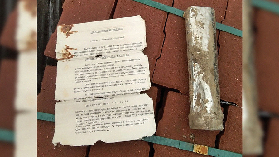 В Рыбинске Ярославской области экскаваторщик обнаружил заложенную в 1968 году капсулу времени в ходе земляных работ. Об этом сообщает «Ярославский регион».