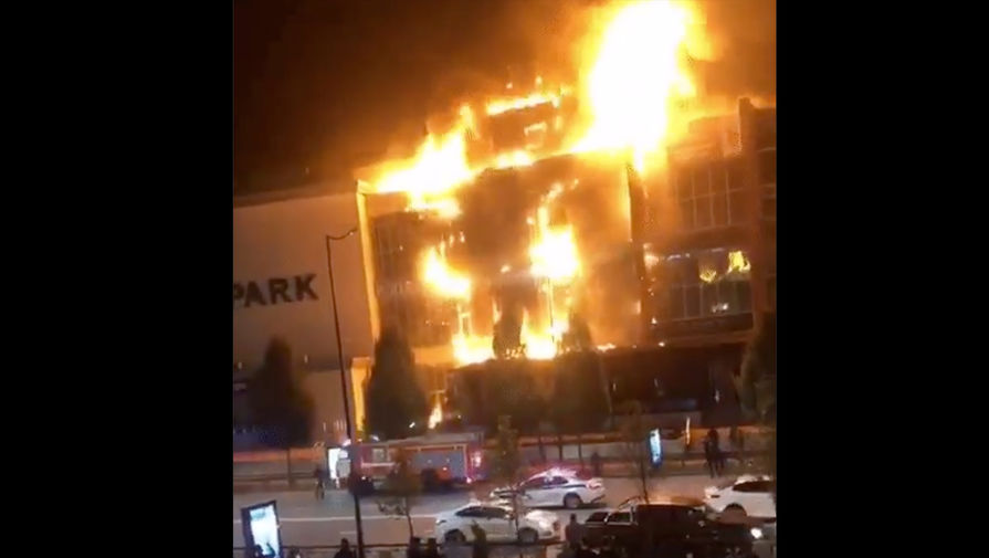Площадь пожара, который произошел в торговом центре «Гранд парк» возросла. Об этом сообщает ТАСС.