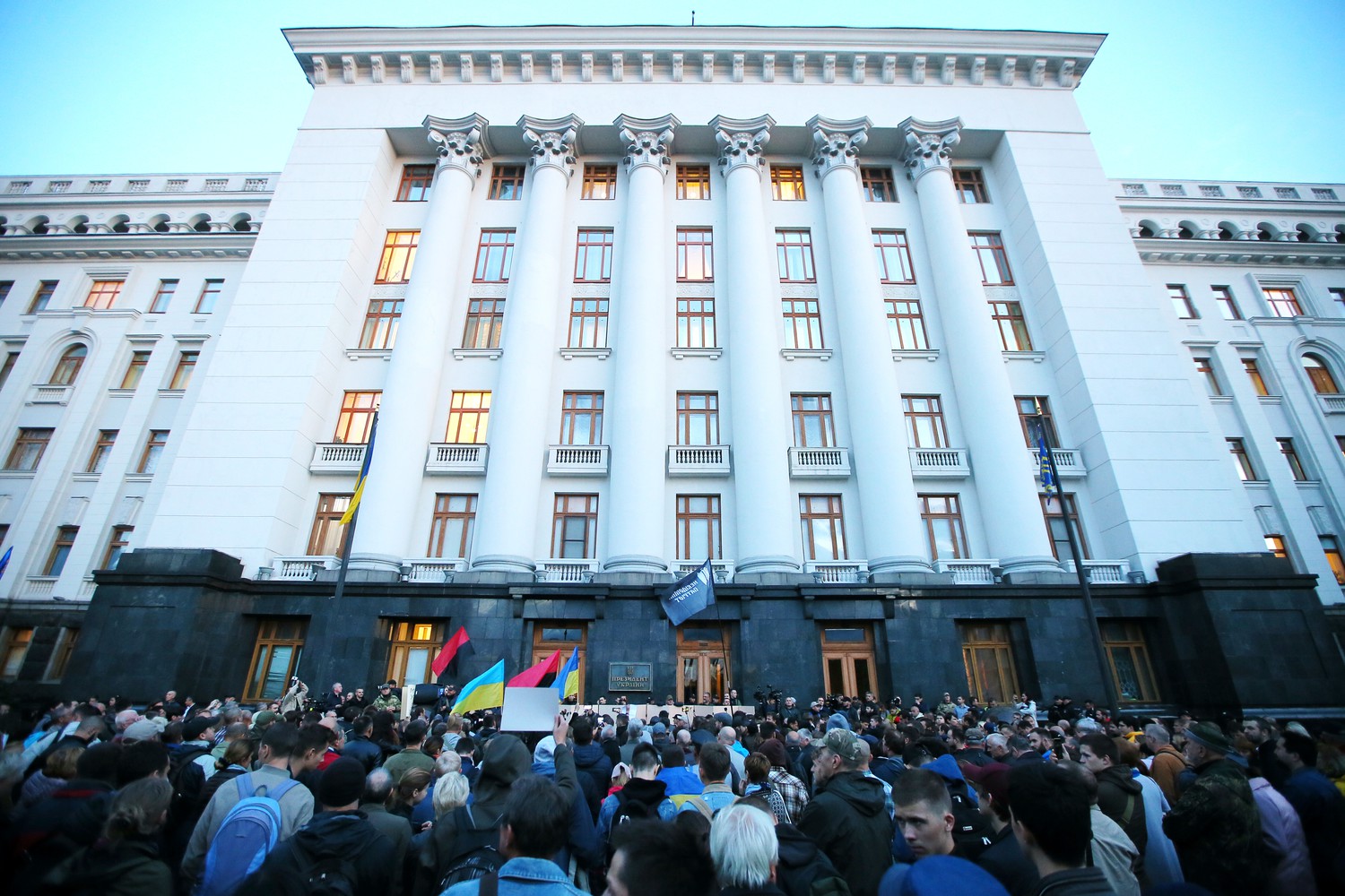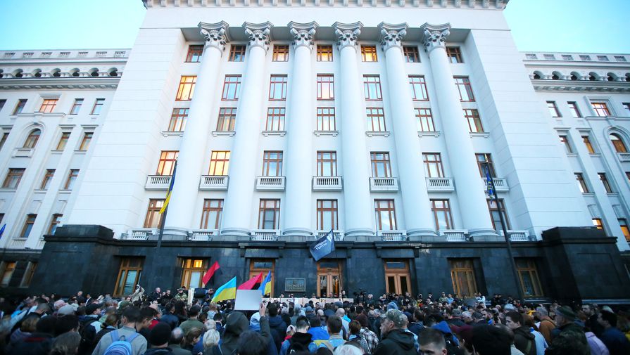 У здания офиса президента Украины Владимира Зеленского проходит акция против проведения «формулы Штайнмайера», которая определяет порядок присвоения Донбассу особого статуса. Об этом сообщает РИА «Новости».