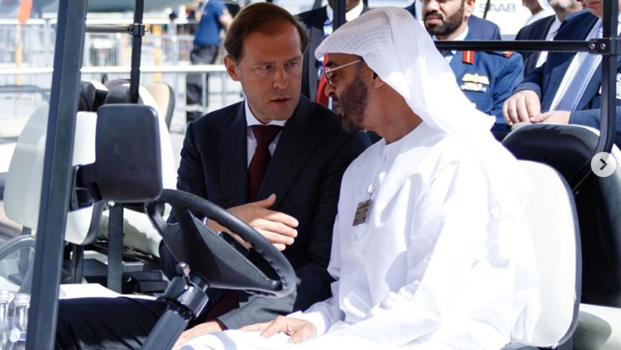 Российский министр промышленности и торговли Денис Мантуров приехал вместе с наследным принцем ОАЭ Абу-Даби Мухаммедом бен Заид Аль Нахайяном на гольф-каре с табличкой такси на открытие международной авиавыставки Dubai Airshow. Снимки появились в Instagram ведомства России.