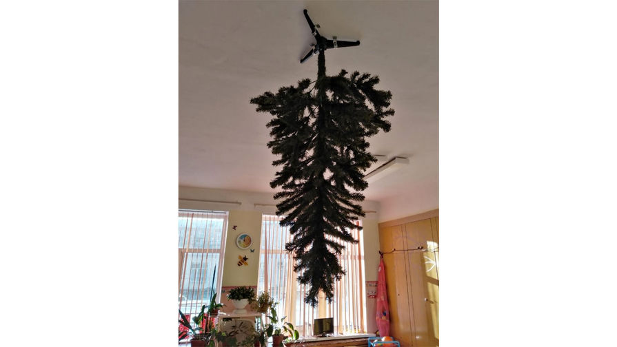 В одном из омских детских садов в преддверии Нового года установили елку под потолком. Об этом сообщает сайт kp.ru со ссылкой на маму одного из воспитанников детсада.