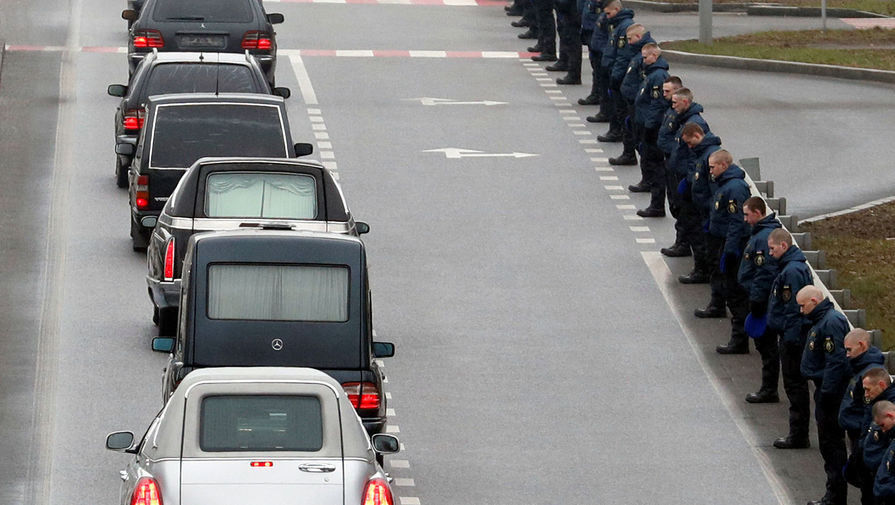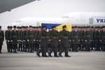В аэропорту Борисполь, куда прибыл самолет с телами 11 жертв катастрофы-гражданами Украины, родственники жертв и высшее руководство страны принимают участие в закрытой части церемонии.